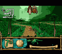 Mario Kart style racing featuring characters from the Chuck Rock series. Whilst it doesn't have that something that makes Mario Kart so special, this is a very solid and enjoyable game. The sound effects are a little rough, but the graphics are sharp and fluid. An excellent cartoon-style intro opens the game, and the four selectable difficulties include different tracks (8 each for 4 difficulties) rather than just increasing your opponent's abilities. There are no pick-ups or speed boost pads, just standard attacks to the left and right, with a turbo granted after each lap completed. Only a tournament mode is available - there are no time trial or challenge levels that would have added a little life to the game, and the 2-player mode is co-operative only - but this title is excellent whilst it lasts. This game supports the 6-button pad, but is perfectly playable with a standard pad. www.sega-mega-cd-library.co.uk
