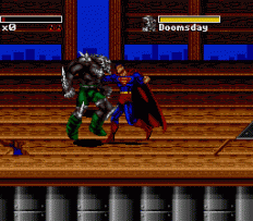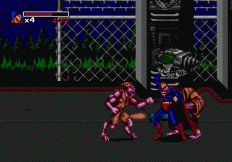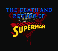 The Death and Return of Superman, based on the now-infamous story arc in which Superman actually died and four wannabes arrived on the scene each claiming to be the Man of Steel reborn. This is far superior to Sunsoft's first attempt at a Superman game, and a pretty good side scrolling beat 'em up to boot, although I find it hard to believe that a simple punch can do so much damage to a Kryptonian superhero. - www.GenesisProject-Online.com